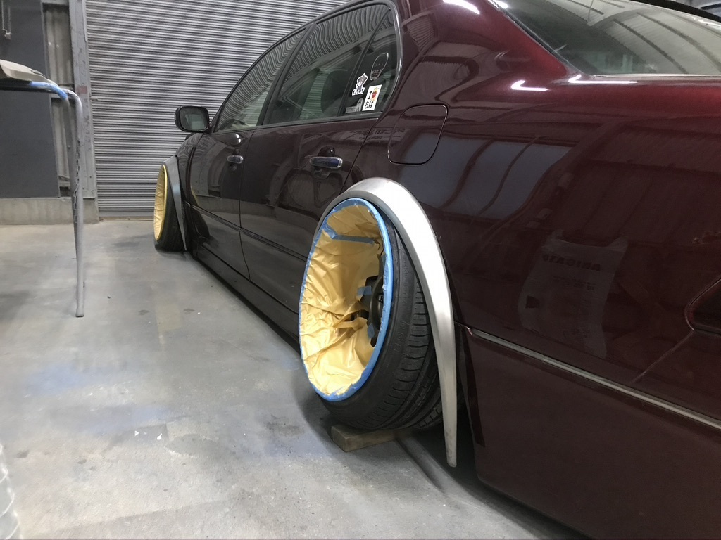 好みのホイールに合わせてオーバーフェンダーを製作。FRPでは出来ない薄さと強度を鉄板で製作します、もちろんFRPでもブリスターなど加工製作出来ます。